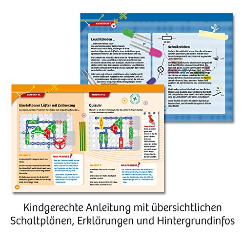 Die Nachgehakt-Seiten der umfangreichen Anleitung vermitteln anschaulich und kindgerecht Hintergrundwissen mit Bezug zum Alltag und erklären wichtige elektronische Begriffe. Ein durchdachtes und kindgerechtes Konzept für den Einstieg in die Elektronik.